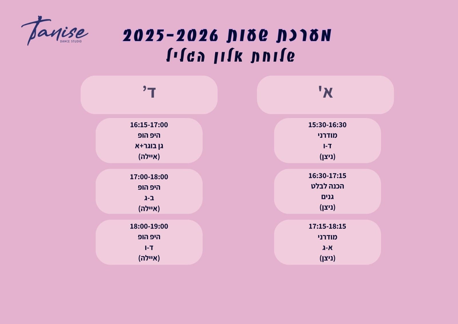 תניס – סטודיו לריקוד הוא בית מקצועי וחם לאוהבי הריקוד מכל הגילאים. אנו מציעים מגוון חוגים, סדנאות ומסלולים מקצועיים לילדים, נוער ונשים באזור עמק יזרעאל, עפולה ומגדל העמק.